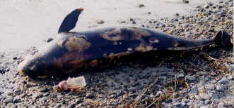 六月十四日に、ゴミを拾っている時にスナメリの死体を発見しました。