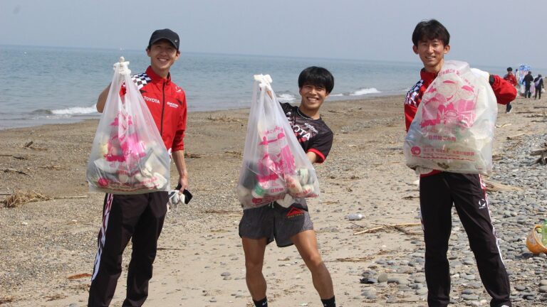トヨタ自動車陸上部の選手の中には、活動に皆勤の選手もいます。その選手は「毎年参加させていただいていますが、ペットボトルやお菓子のゴミ、家電ゴミもあって驚いています。きれいになっていく海を見ると心もきれいになりますが、これだけのゴミが出てしまっているということも考えていかなければならないと思いました」と話してくれました。