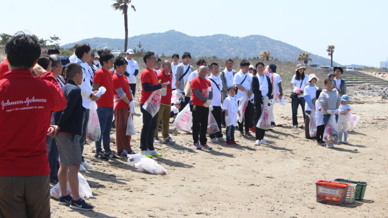 4月12日(土)、愛知県田原市の西の浜にて通算359回目となる海岸清掃活動を実施しました。今回は特別活動として、ジョンソン・エンド・ジョンソン日本法人グループと株式会社八神製作所の皆さん合わせて89人がボランティア参加してくださいました。ジョンソン・エンド・ジョンソンの皆さんは北海道や広島など全国各地から集まり、企業の社会貢献活動の一環として西の浜クリーンアップ活動に参加してくださいました。当日は快晴で絶好のクリーンアップ活動日和となりました。