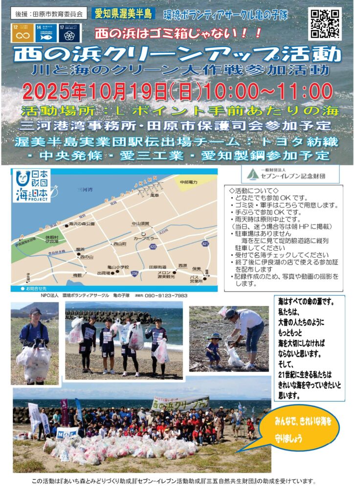 お知らせ 2025年10月の西の浜クリーンアップ活動のお知らせ kamenokotai2025年9月29日 kamenokotai サイト http://kamenoko.org 投稿を作成しました 37